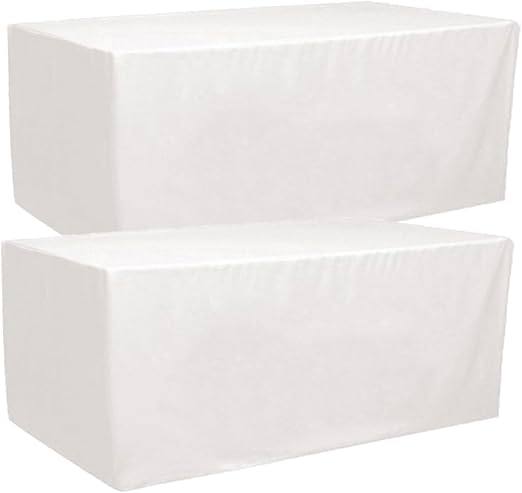 2 Pack White 8ft Polyester Fitted Tablecloth Rectangular Table Cover 96Lx30Wx30H Inch Wedding Banquet Party