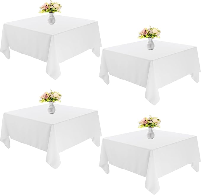 4 Pack Square Table Cloth 52x52 Inch White Tablecloth Machine Washable Fabric Polyester Table Cover for Dining, Buffet Parties, Picnic, Events, Weddings and Restaurantsä__Whiteä__