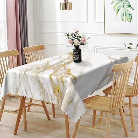 54x78inches Marble Rectangle Tablecloth White Marble Texture Golden Crack Luxury Table Cloth Waterproof and Stain Resistant Table Cover for Kitchen Dining Room Buffet Banquet Party Decoration