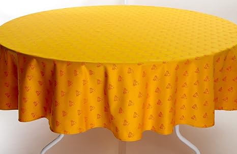 Amelie Michel Luxury French Jacquard Tablecloth in Maya Bee, Gold | Stain Resistant, Easy-Care, Machine Washable Fabric Made in France [70" Round]