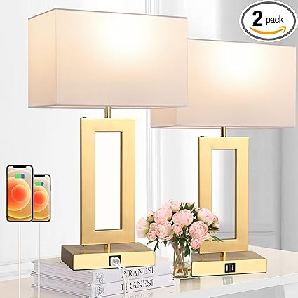 22_„Ž_„Ž Set of 2 Touch Control Table Lamps w. 2 USB Ports, 3-Way Dimmable Bedroom Bedside Nightstand, Modern Gold&White Touch Lamps for Living Room End Table, LED Bulbs Included