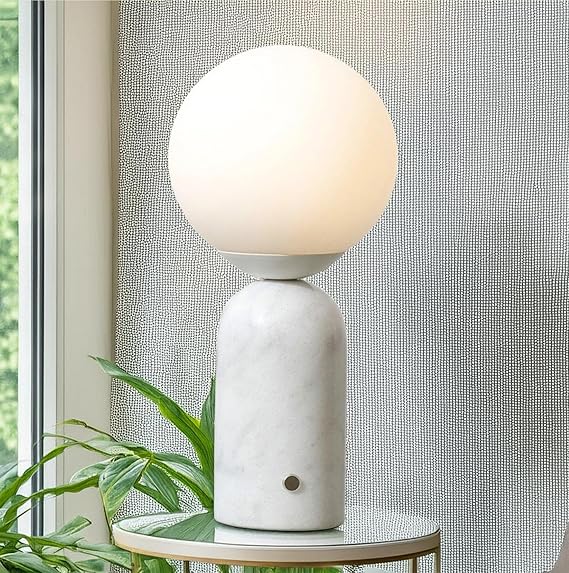 Brightech Mila Tall LED Table Lamp - Bedside Reading Light with Elegant Marble Base, Globe Lamp Shade - Modern Desk and Nightstand Lamp with Ambient Lighting for Bedroom, Living Room, Office - White