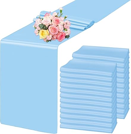 24 Pack Baby Blue Table Runner 12 x 72 Inch Premium Satin Table Runner, Bright Silky Table Runner for Wedding Parties Decorations Reception, Wedding Table Runners for Rectange and Round Table