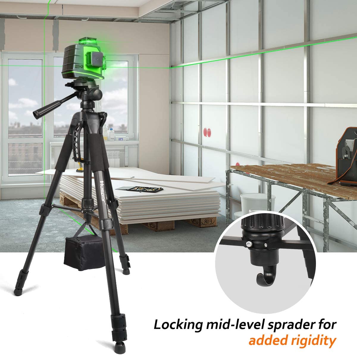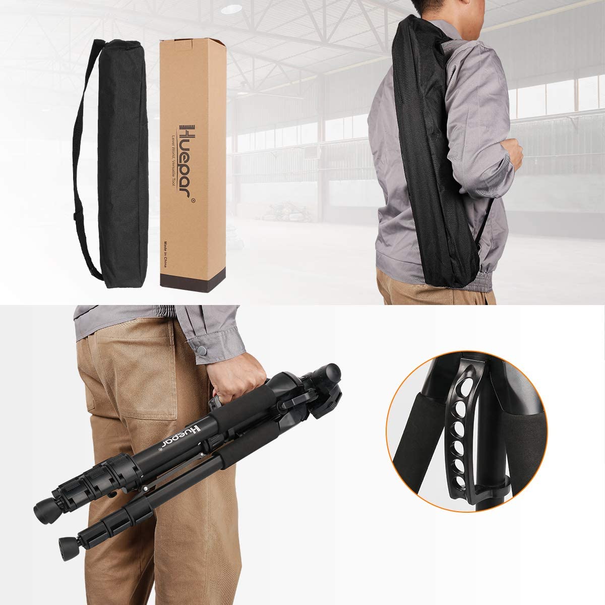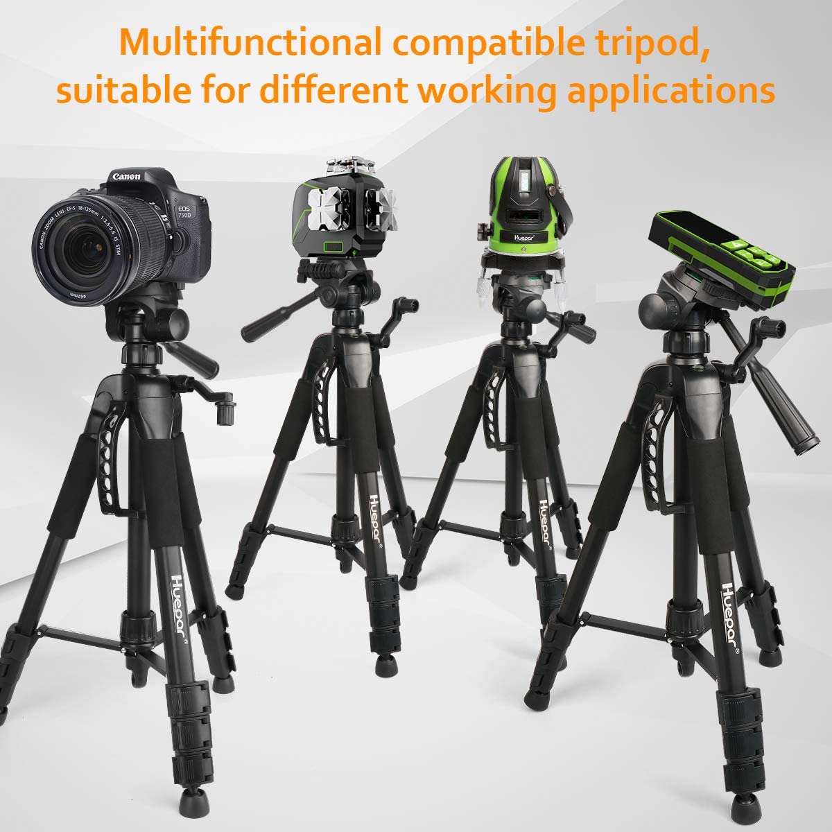 Huepar Lightweight TPD14 56" Adjustable Laser Level Tripod with 3-Way Swivel Pan Head, Quick Release Plate with 1/4" Screw Mount, Bubble Level, Multi-Function Hook and 5/8" UNF Adapter Nut