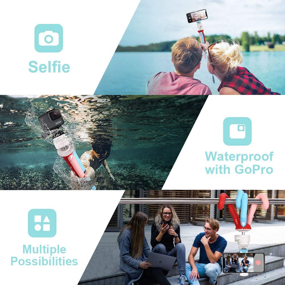• 【Waterproof & Flexible 】The strong flexible legs can easily wrap around bicycle, around a pole, or even hung on a three limb. It can even be used as a desktop camera stand or video tripod for occasional private photos such as selfie, family parties and so on.