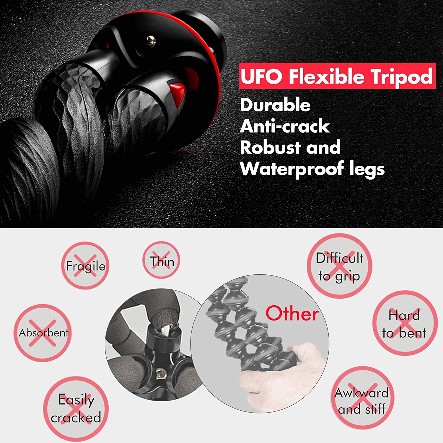 • 【Durable and Resistant】Fotopro Flexible tripod made with high-density rubber-coated Robust legs which makes it more sturdy and durable. It can be bent arbitrarily and attached anywhere. (sloping or slick surfaces). Allowing you to capture different angles on your trip