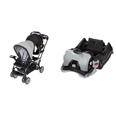 Baby Trend Sit N' Stand Ultra Stroller and EZ Flec Loc 32 Infant Car Seat Base Bundle, Morning Mist and Black