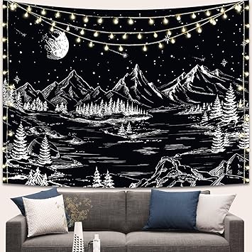 Apdidl Black and White Tapestry Starry Night Mountain Tapestries for Bedroom Aesthetic Moon and Stars Tapastry's Wall Hanging Dark Nature Forest Wall Tapestry for Living Room Dorm (51" x 60")