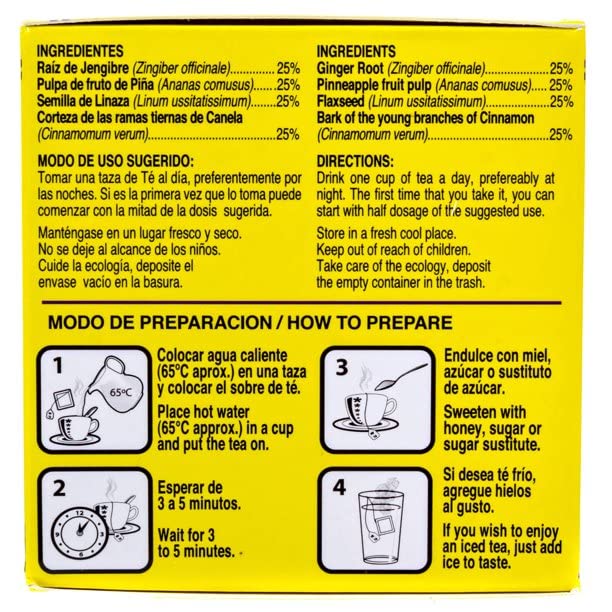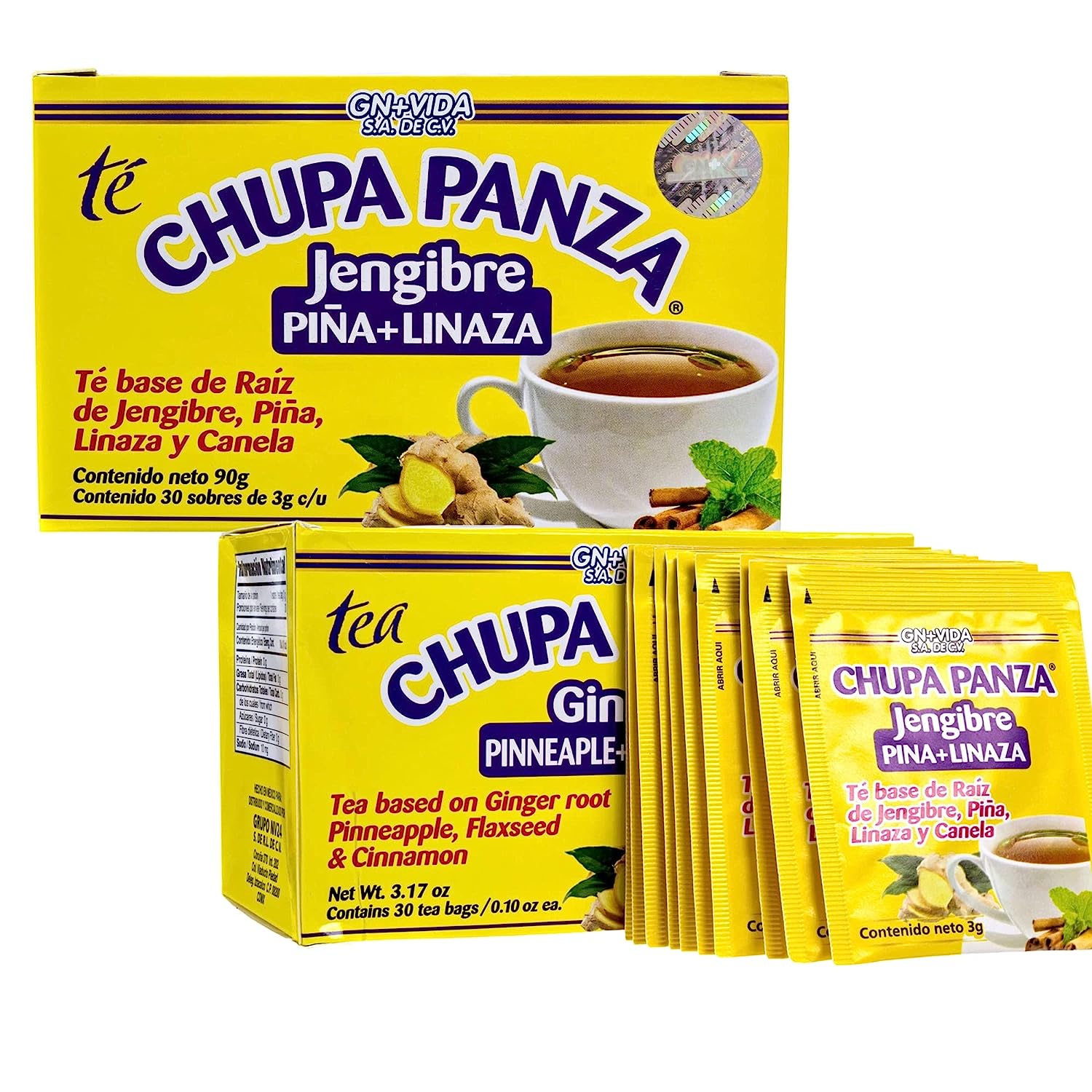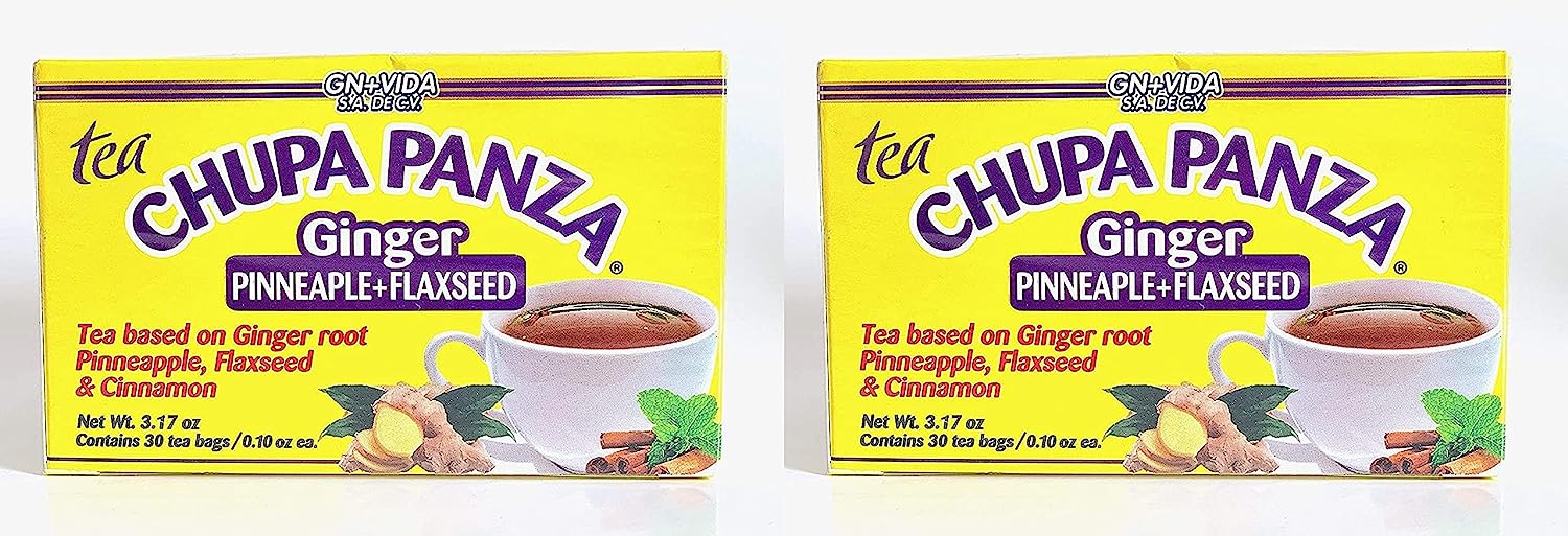 Tea CHUPA Panza, Tea Based ONGINGER Root, PINNEAPPLE, Flaxseed & Cinnamon (30 Tea Bags/0.10 oz Each) Pack of 2