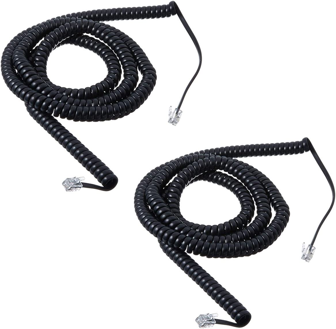 iMBAPrice (Pack of 2) Black Coiled Telephone Phone Handset Cable Cord, Coiled Length 3 to 12 feet Uncoiled (Value Pack)
