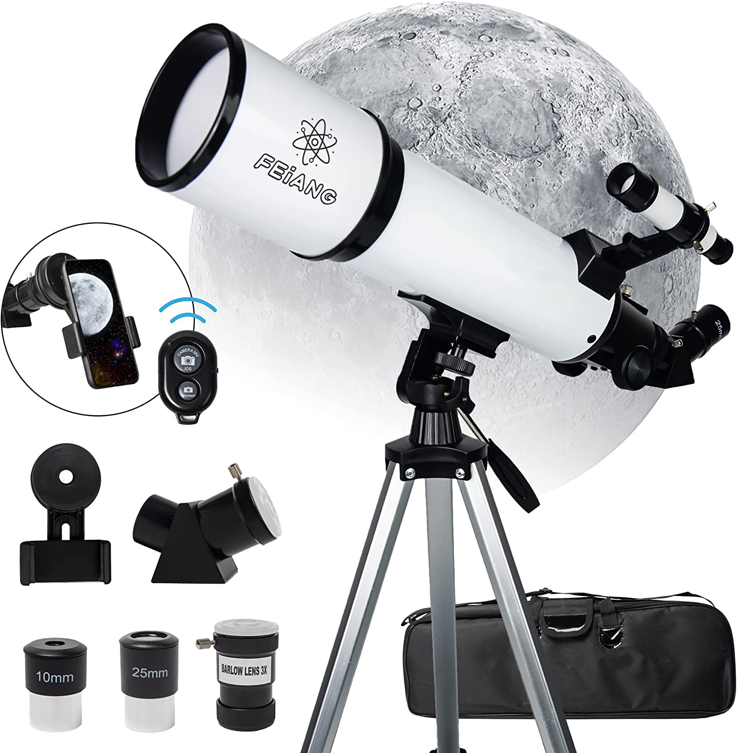Telescope 80mm Aperture 600mm - for Beginners & Adults Astronomical Refracting Telescopes AZ Mount Tripod Fully Multi-Coated Optics 24X-180X High Magnification, with Wireless Control, Carrying Bag