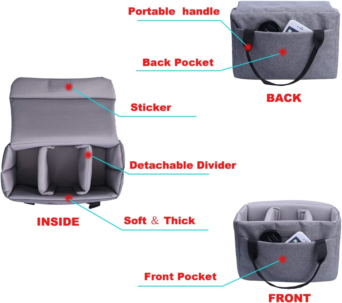 • This camera case insert made from high density nylon fabric, anti-static composite and soft padded inner lining camera pouch protecting your camera, lens and accessories from shocking and scratching