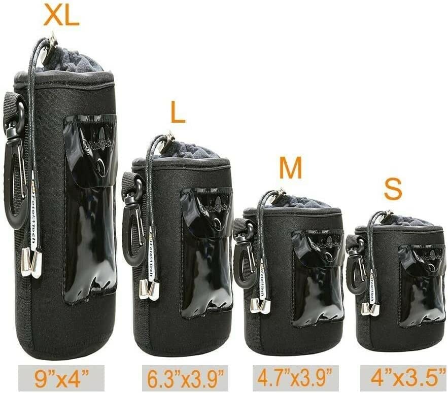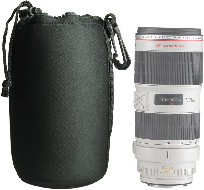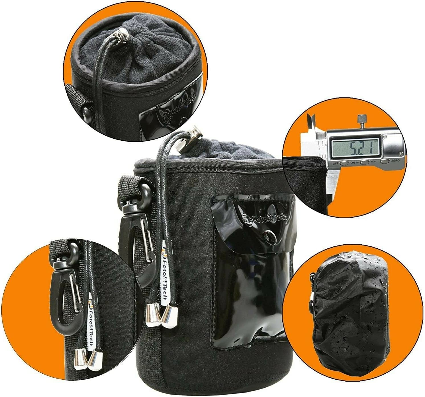 Foto&Tech Great valued combo features 4 piece black camera lens pouch set for small, medium, large and extra large lens. This lens pouches are made of neoprene, the same material used to protect scuba divers from the harsh sea. This neoprene lens pouch is very soft and elastic, but durable to hold and protect your lens.