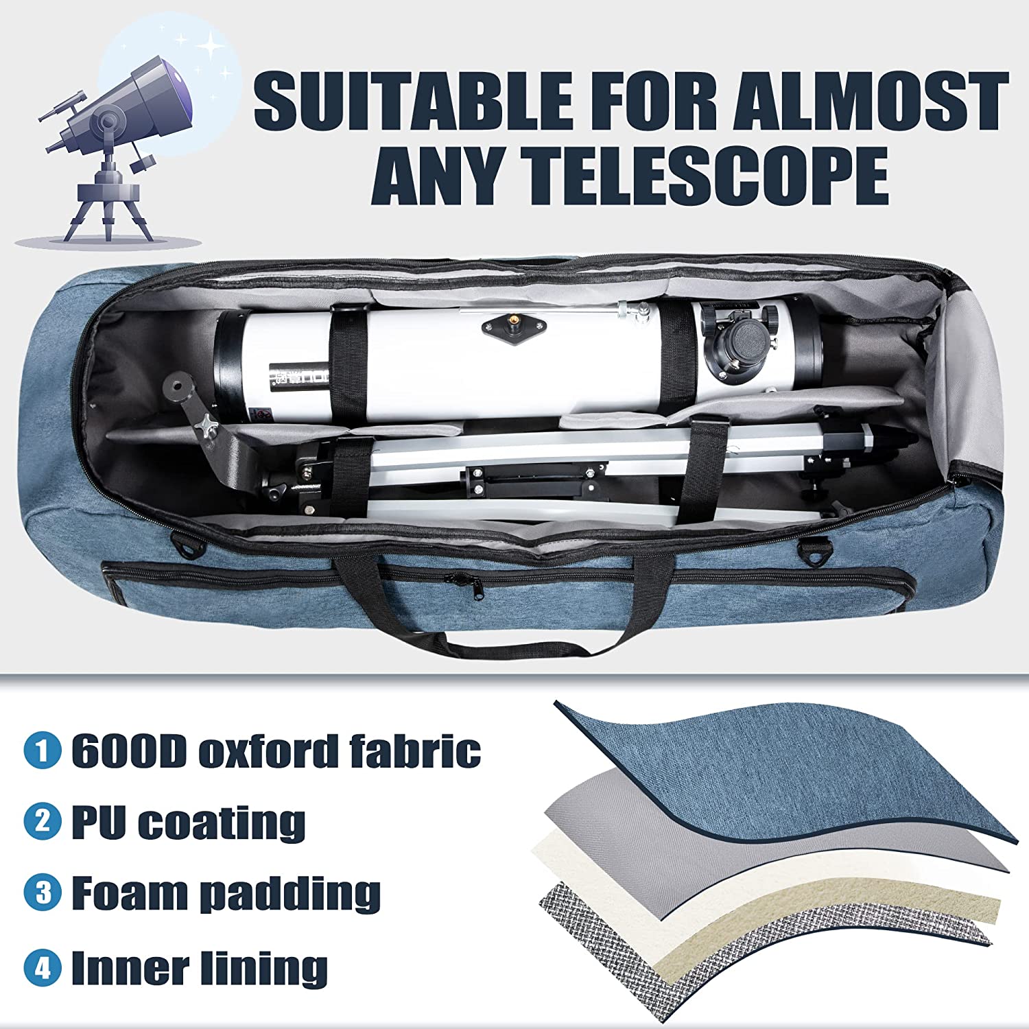 • [Better Protection]:Our telescope bag safeguards your telescope,minimizes the risk of damage to your telescope during . An Ideal Helper for Astronomers and Astronomy Enthusiasts to Go Out for Stargazing. GoHimal provides a true satisfaction guarantee and don’t hesitate to contact us if there is any problem.