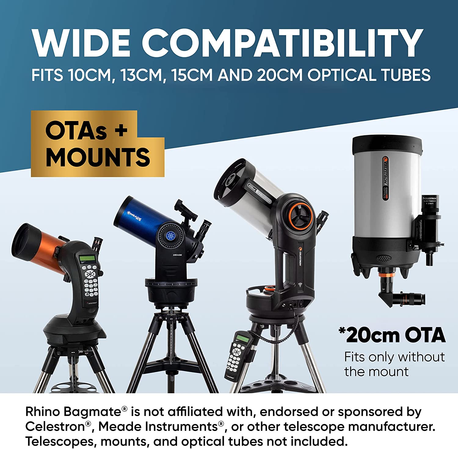 Rhino BagMate H8 Telescope Case Compatible with Celestron Optical Tubes | Hard Case with Soft Padding for Maximum Protection of 4”, 5”, 6”, and 8” Optical Tubes | Includes a Built-in Accessory Bag