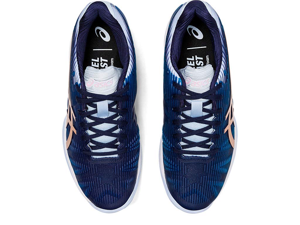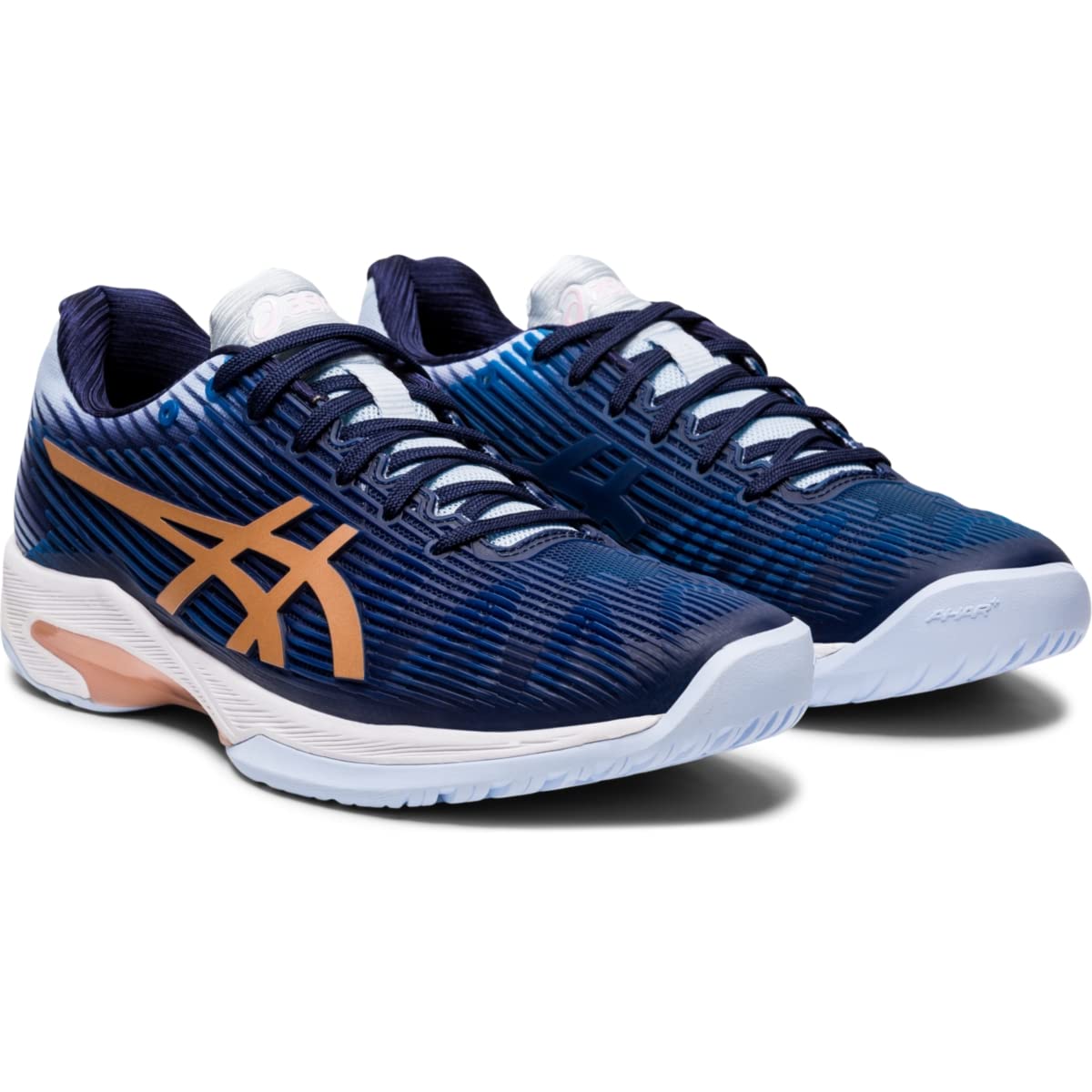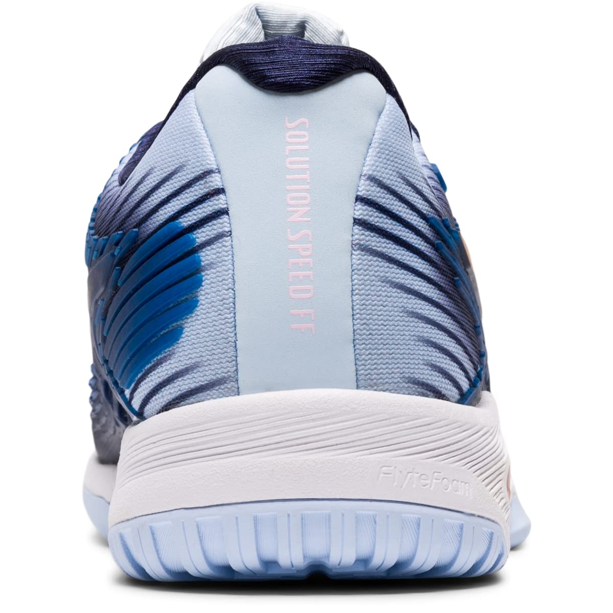Details: When you're playing a high-impact sport like tennis, you need technically advanced footwear that's going to protect your feet and knees. The women's SOLUTION SPEED FF tennis shoe by ASICS boasts an unrivalled blend of style and supportive technology.