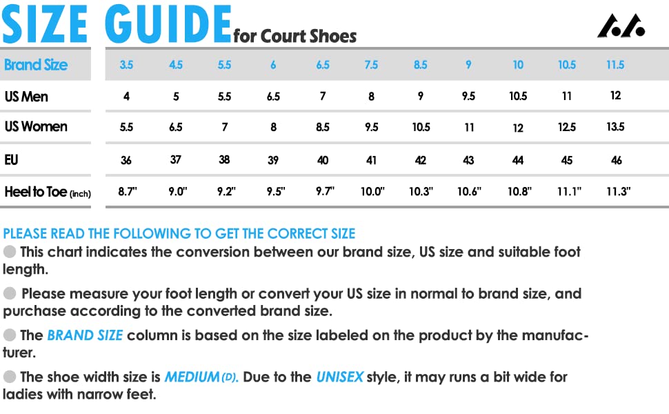 • MULTI-PURPOSE: These shoes are designed for various athletic activities such as pickleball, tennis, badminton, volleyball. With the soles designed specifically for court sports, these shoes could perform well on indoor or outdoor courts.