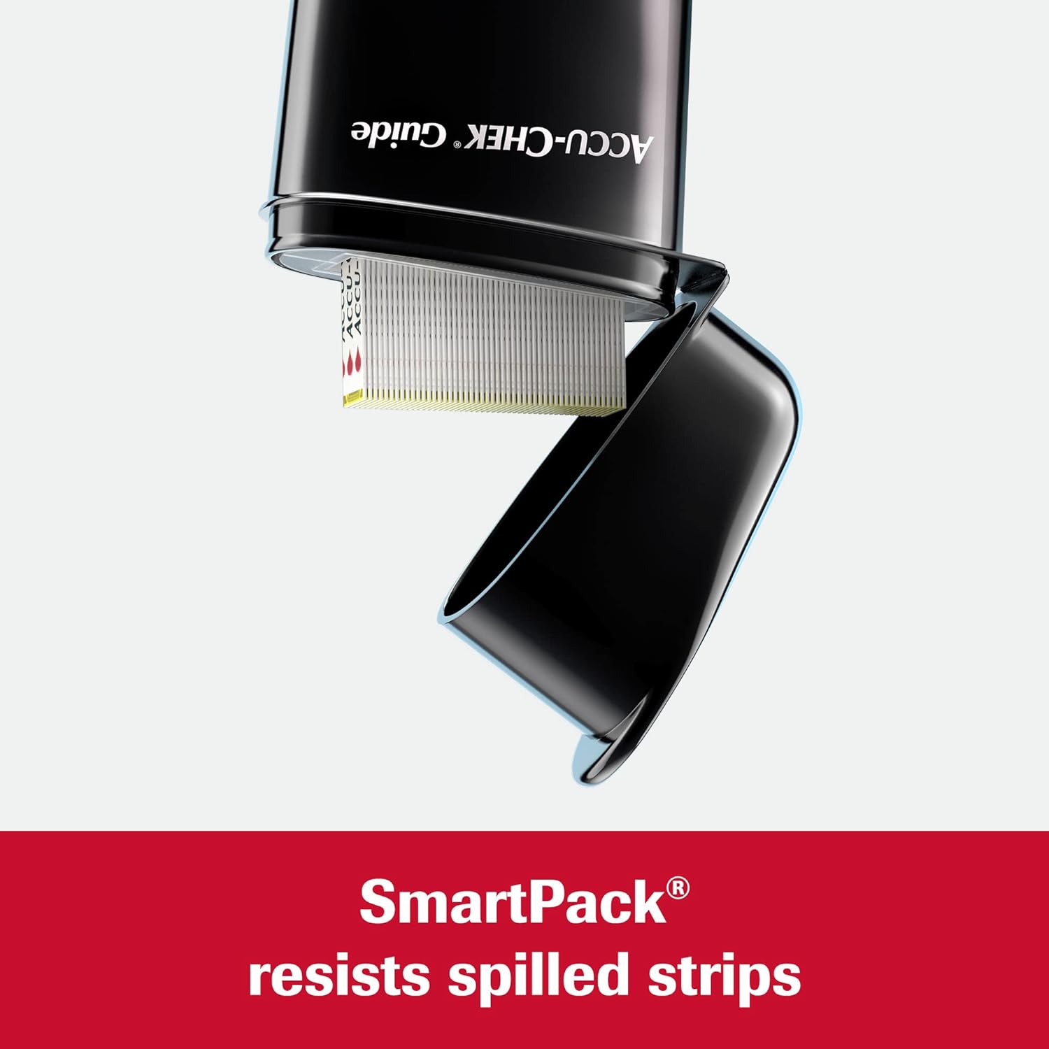 • Test strips come in a patented, spill resistant SmartPack that dispenses one strip at a time, helping to reduce dropped strips