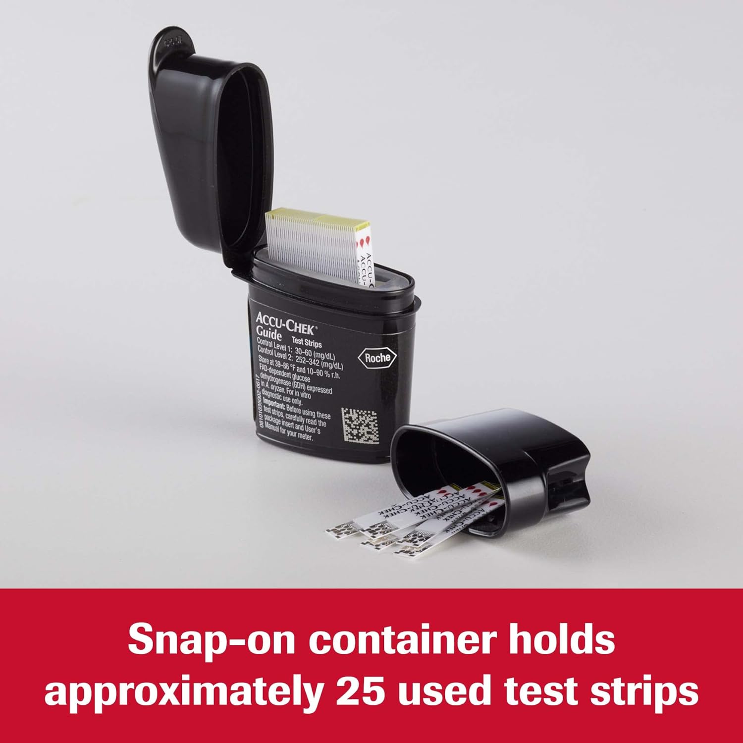 • Designed only to be used with the Accu-Chek Guide, Guide Me, and Guide Link Meters; Not compatible with other glucometer testing devices; Includes 100 test strips