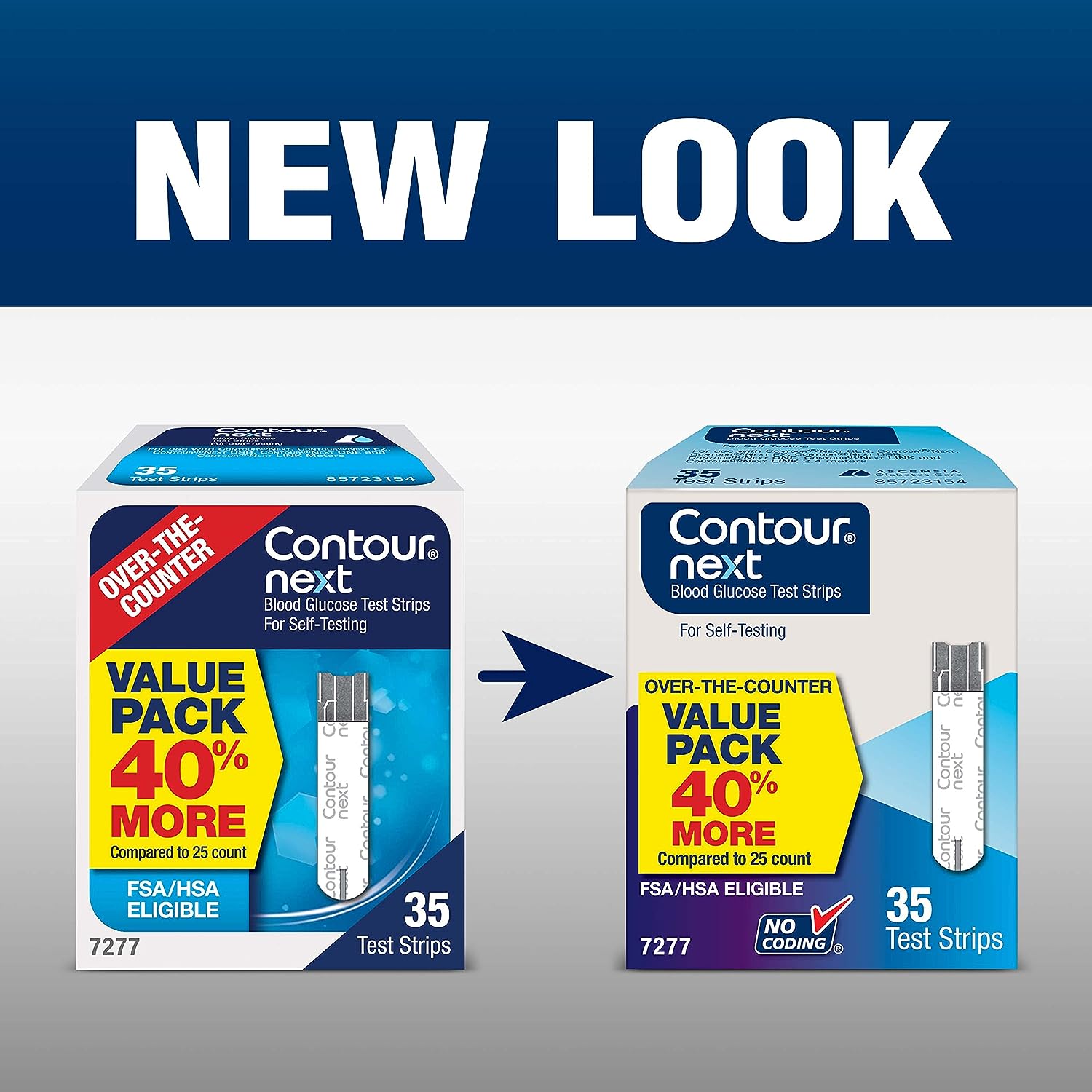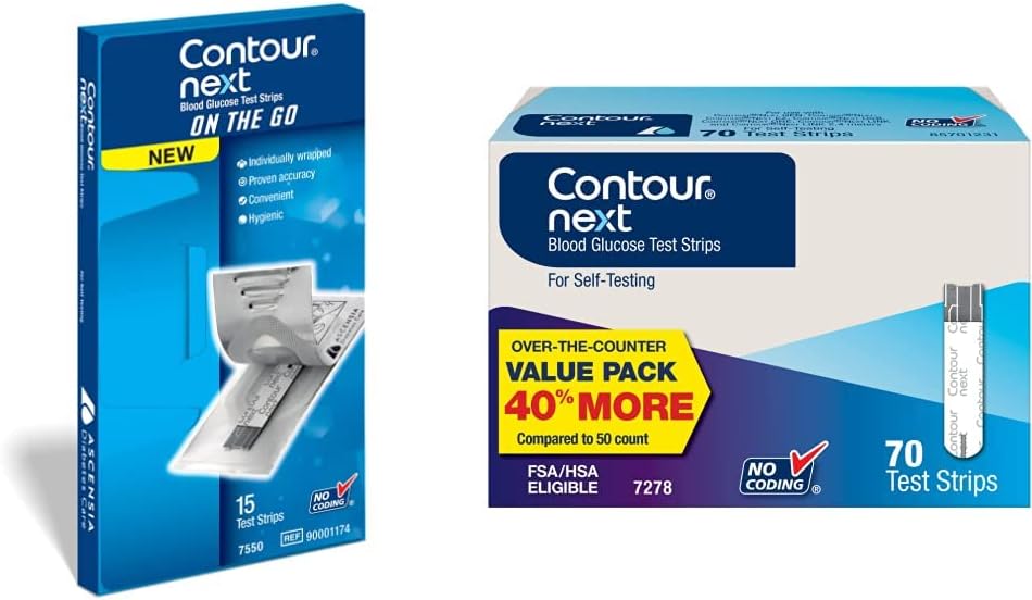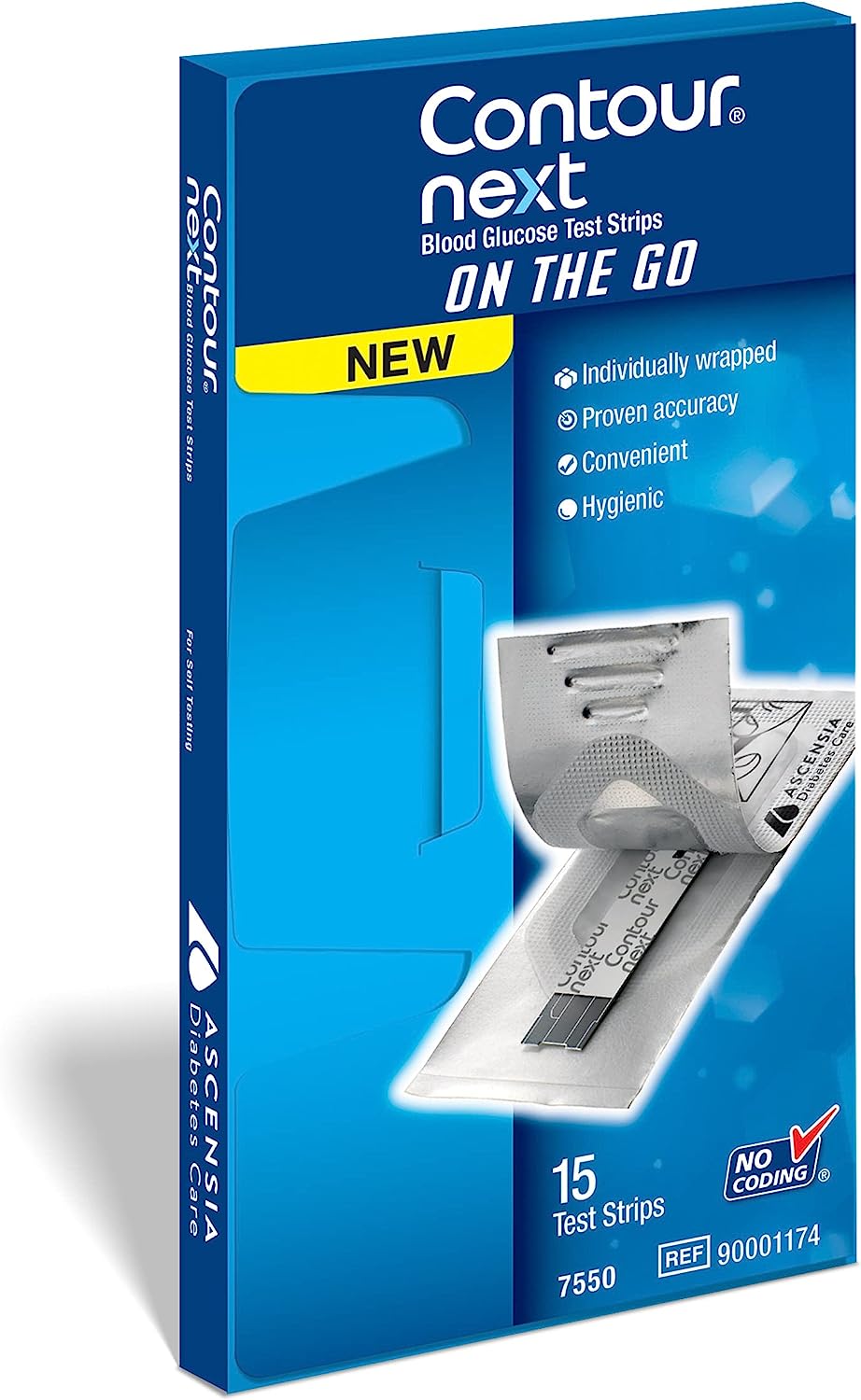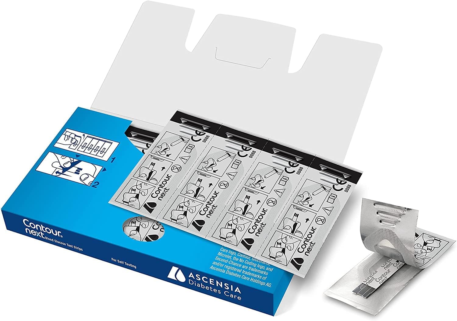 For use with the range of CONTOUR NEXT blood glucose meters, CONTOUR NEXT Blood Glucose Test Strips offer a simple solution for your testing needs with proven accuracy (1,2), small blood sample, and with No Coding technology so they are ready for use right out of the box. Read user guide before use. Easily monitor your blood glucose levels at home with highly accurate readings from a tiny 0.6 μL blood sample. CONTOUR NEXT Blood Glucose Test Strips make daily testing easy with highly accurate results and automatic compensation for many common interfering substances (such as acetaminophen and vitamin C). (4)* Contour Next Blood Glucose Test Strips also feature Second-Chance Sampling, allowing you to apply more blood to the test strip being used, which may help prevent wasting test strips and save money. (3)