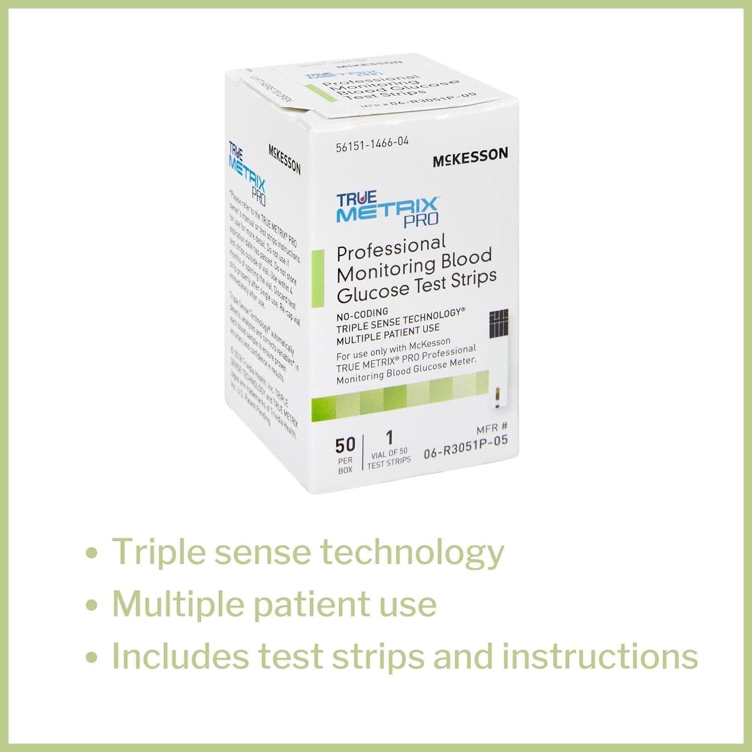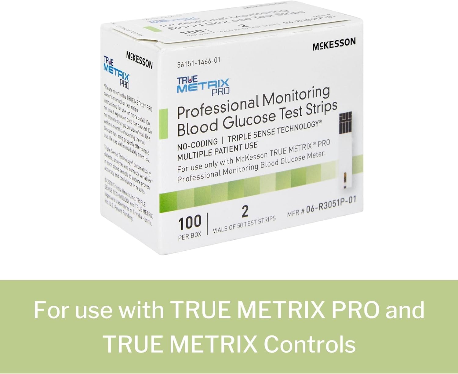 McKesson True METRIX PRO Professional Monitoring Blood Glucose Test Strips - No Coding, Triple Sense Technology, Multiple Patient Use - Vials of Strips, 100 Strips, 1 Pack