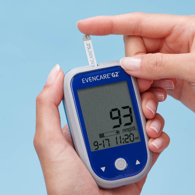 Medline EvenCare test strips are made for providing fast, 6 second blood glucose measurements when used with the Medline EvenCare G2 Blood Glucose Monitoring System. Just slide the strip into the meter, provide a tiny one millionth of a liter blood sample and accurate results are displayed on the G2 meter in seconds.