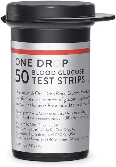 One Drop Glucose Test Strips (50 Count)—Compatible with One Drop Glucose Meter and Starter Kit