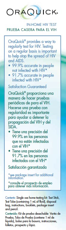 Oraquick HIV Test in Home. With OraQuick, you have the comfort of getting your test results in the privacy of your own home. It's the only at-home oral HIV test approved by the . Trusted: The same test healthcare professionals use. Fast: Results in 20 minutes. Oral: (no blood required) Just a quick oral swab application. Confidential: 24/7 call-center support. Safe and Effective: .