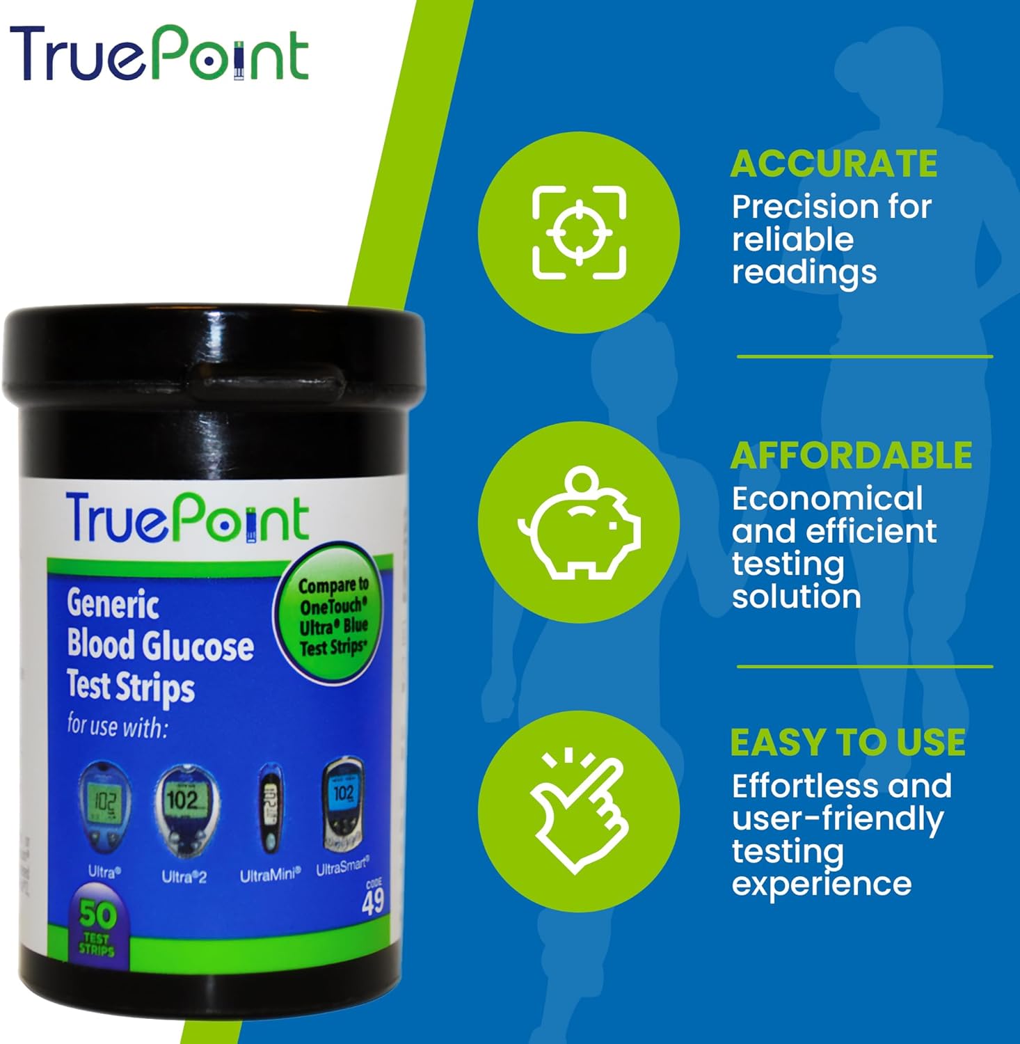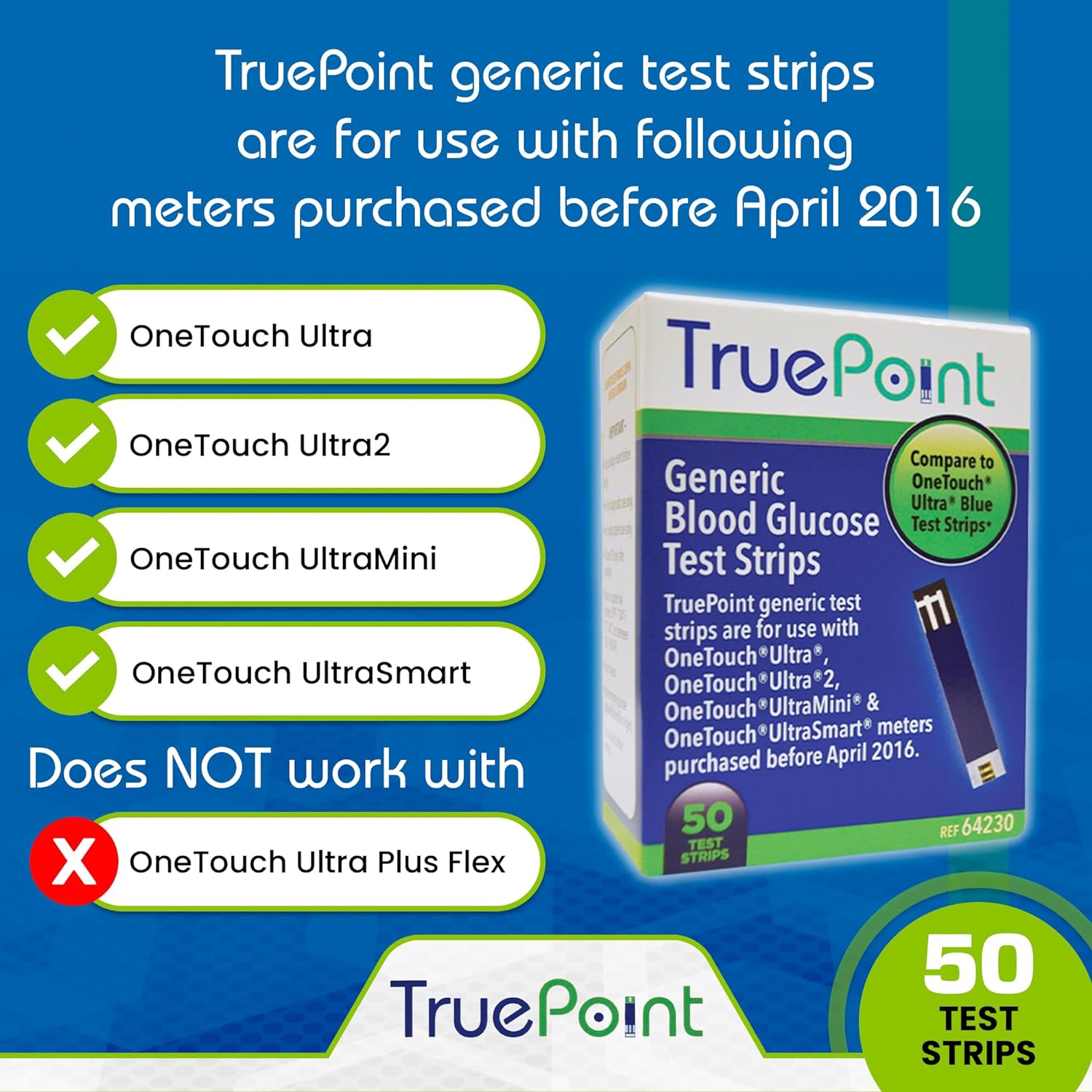 TruePoint Generic Test Strips 50 Count for Use with OneTouch Ultra, Ultra2, and UltraMini & UltraSmart Meters All Purchased Before April 2016