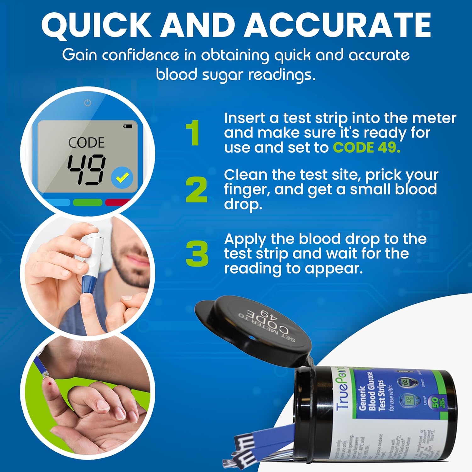 • Each Box Contains 50 TruePoint Blood Glucose Test Strips (Meter NOT Included)