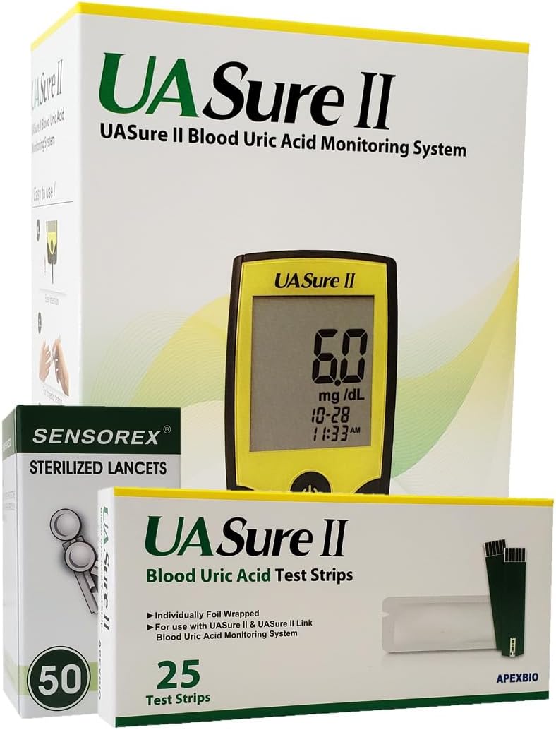 Uric Acid Test Kit by UASure - Bundle Includes UA Sure Meter, 30 Test Strips, 55 Lancets - Home Monitor Gout Tester