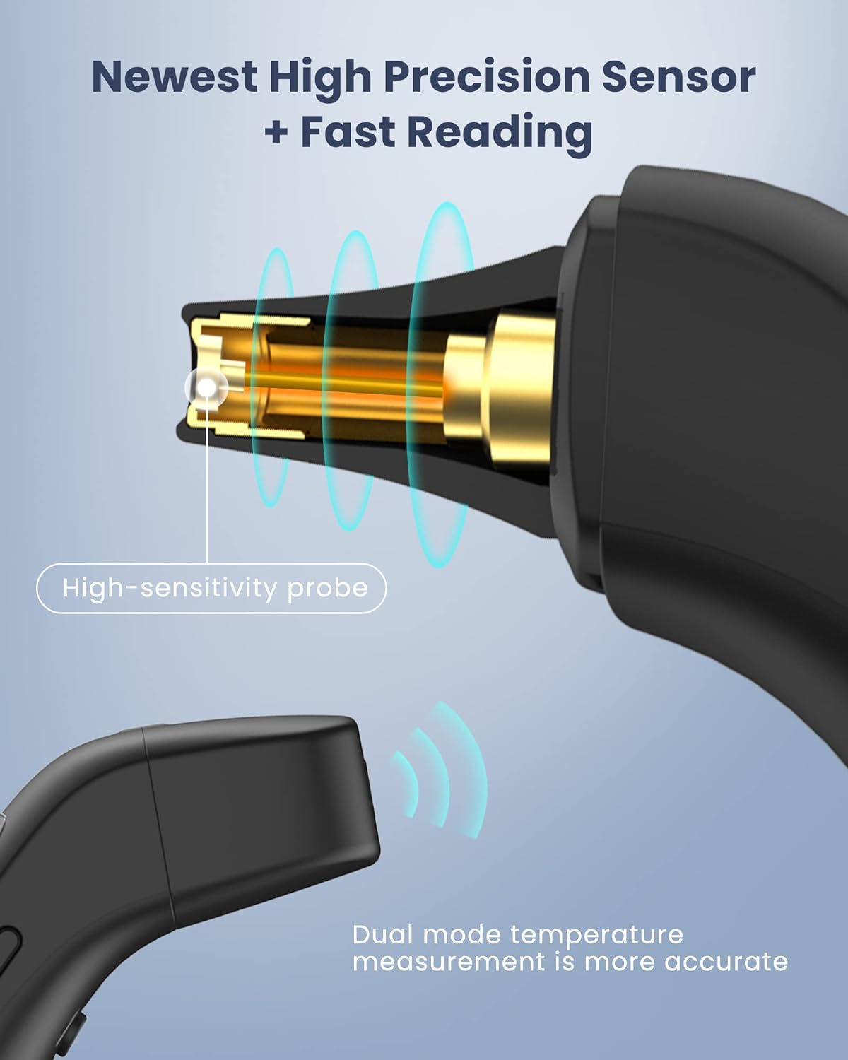 • RELIABLE & FAST RESULTS: Get fast, reliable results with this clinically proven infrared thermometer. This thermometer features infrared technology that takes a temperature in 1 second. It also has a memory storage capacity for the last 30 readings to track your family's temperature continuously. Please use the product under the conditions stated in the instruction manual to ensure the best accuracy of product measurement.