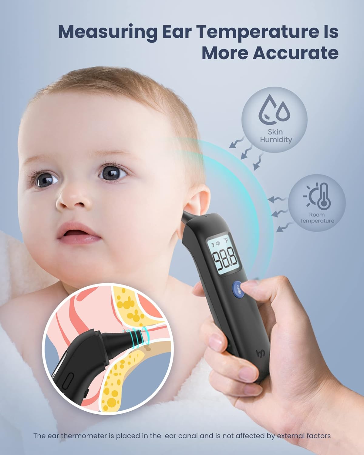 Digital Ear and Forehead Thermometer, No Touch Thermometer for Adults, Kids, Toddlers, Infrared Temporal Thermometer, 1 Second Reading, FSA HSA Eligible