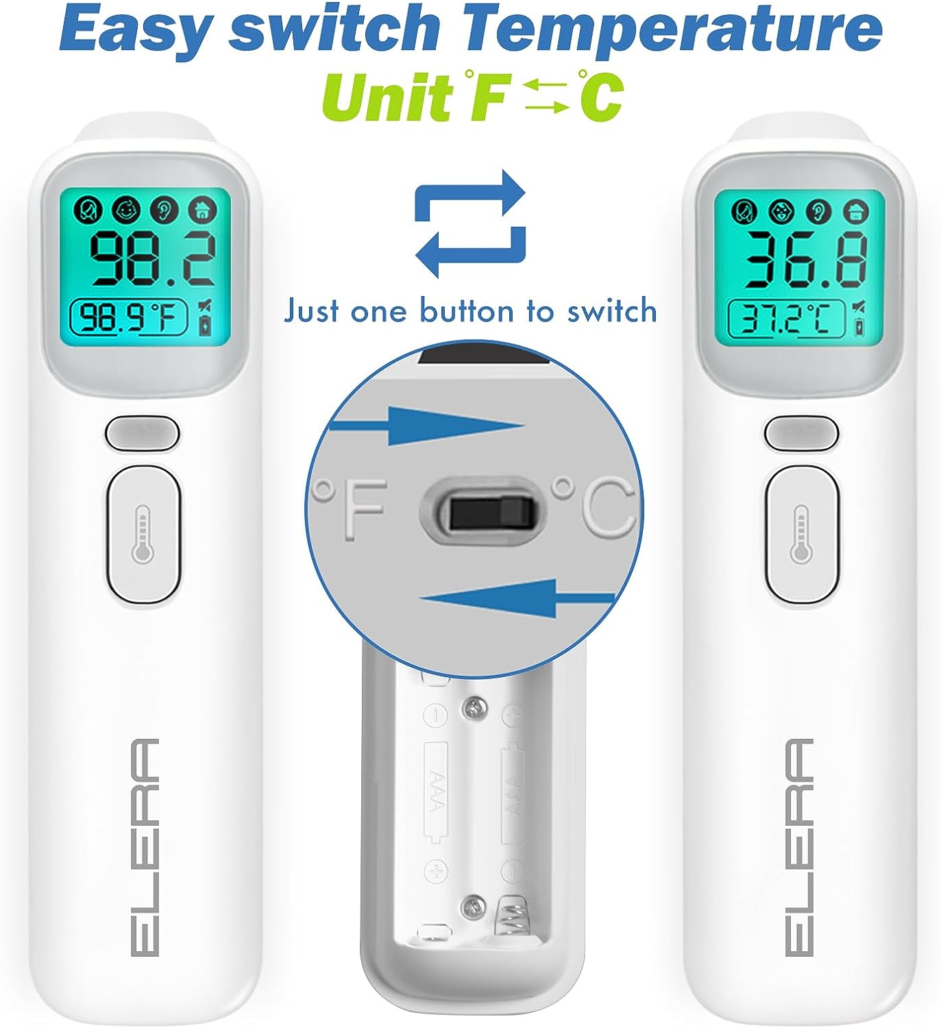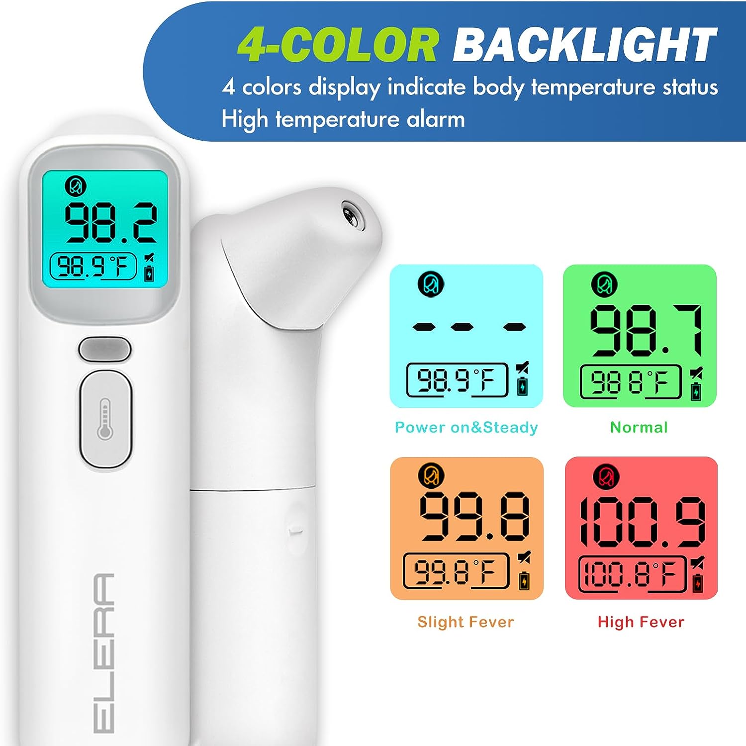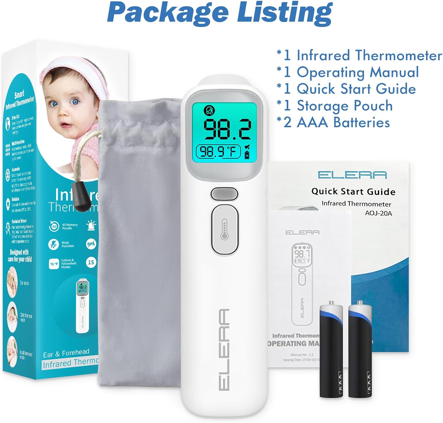 Elera Ear Thermometer for Kids, Baby Thermometer with Forehead and Ear Mode for Adults, Infant, Kids and Toddler, Touchless and 1 Second Reading with Fever Alarm and Mute Function, LCD