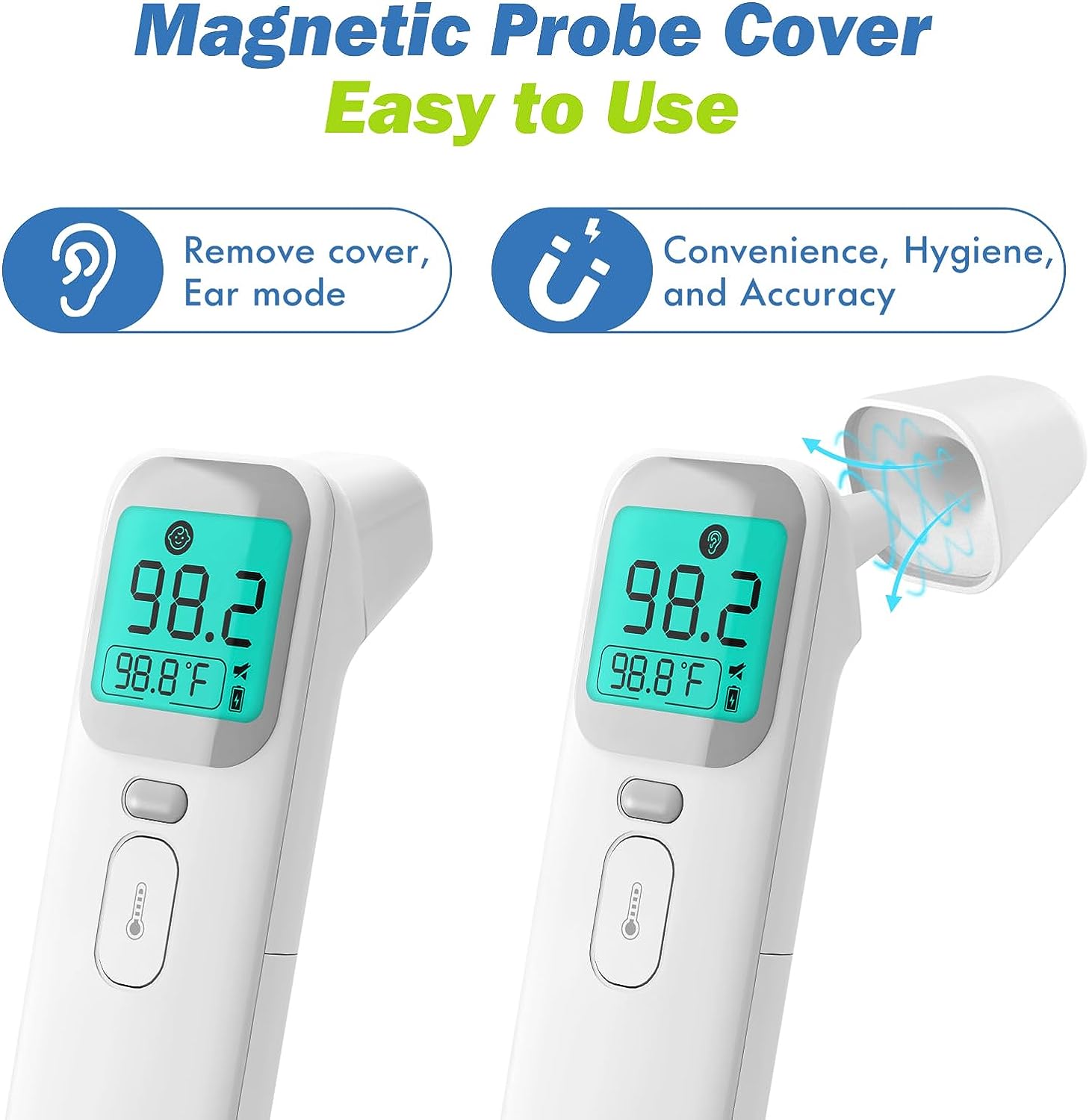 • Multiple Measurement Modes: The infrared thermometer is an ideal for adults, kids and elders. In addition to measuring forehead and ear, it can also measure room, object, and liquids temperature. Great choice for home, nursery, travel, clinic and school.