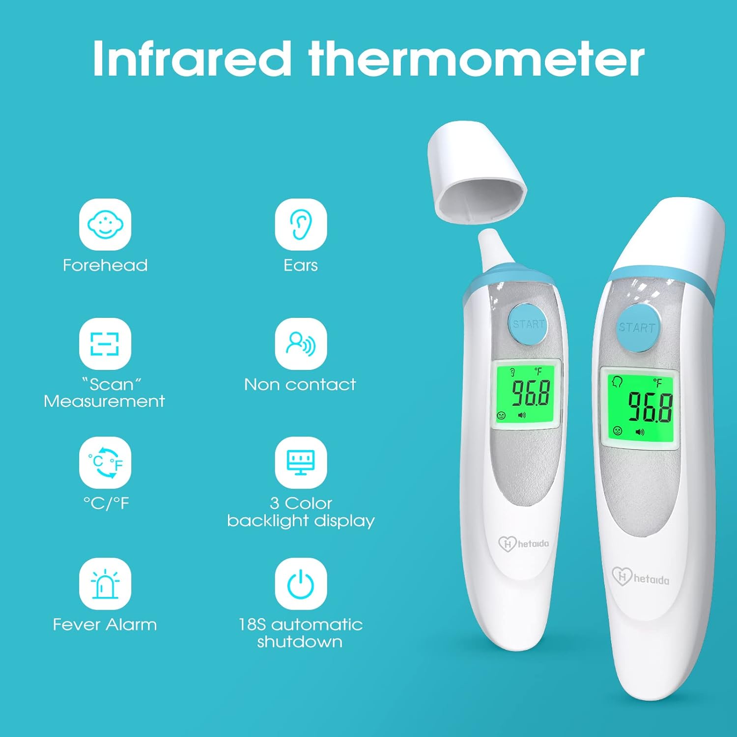 • [FASTER RELIABLE SAFER]:hetaida thermometer is backed by clinical studies and recommended by medical professionals. To deliver reliable results and ensure excellent performance, we apply the updated high-accuracy sensor probe and the latest smart chip.