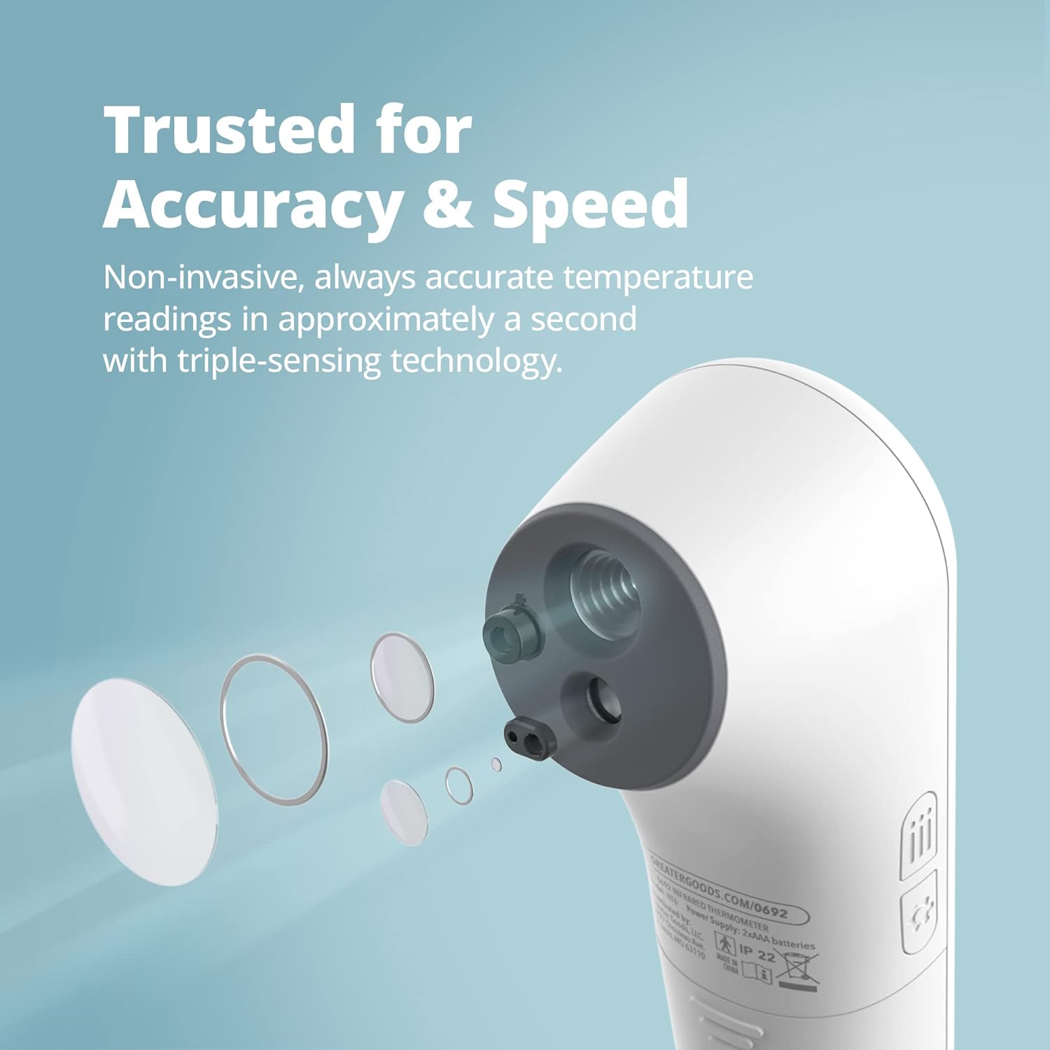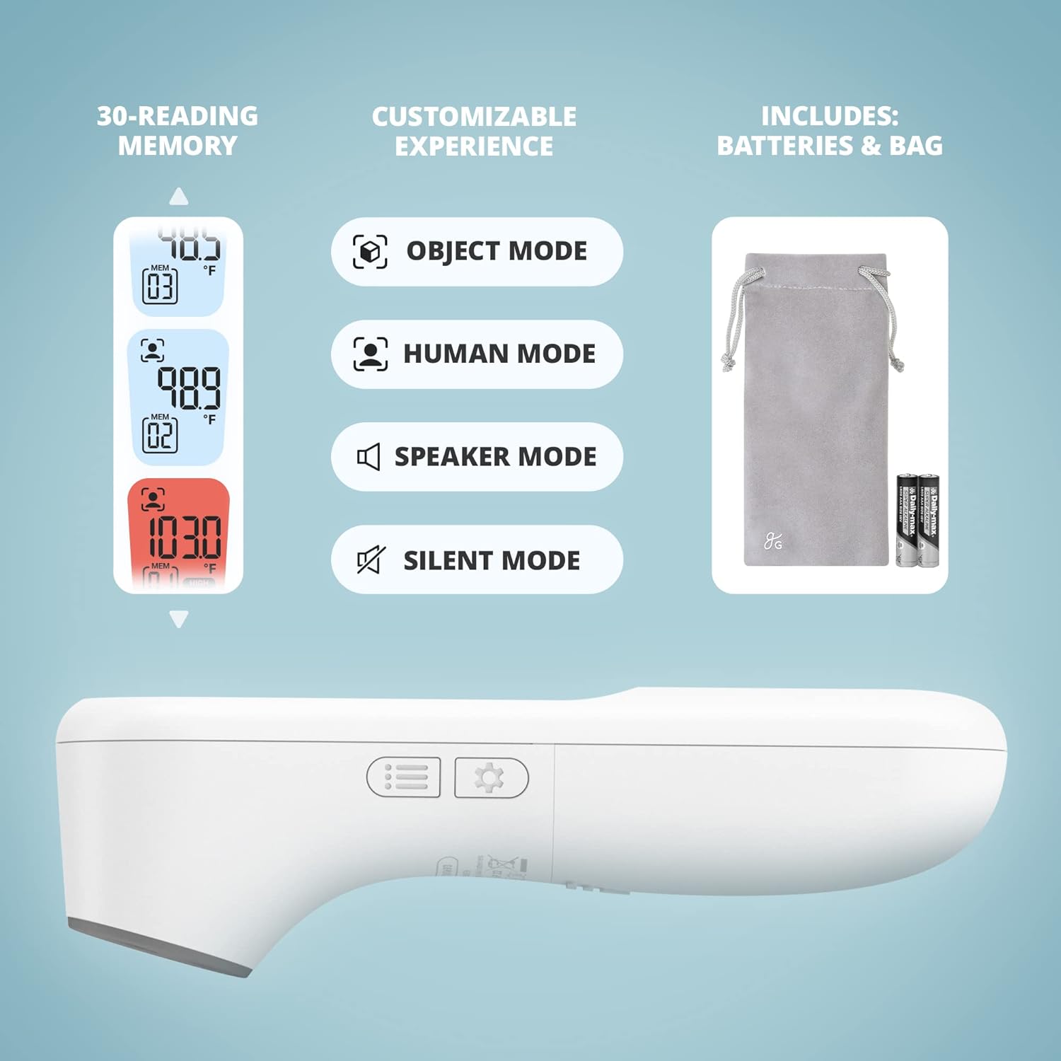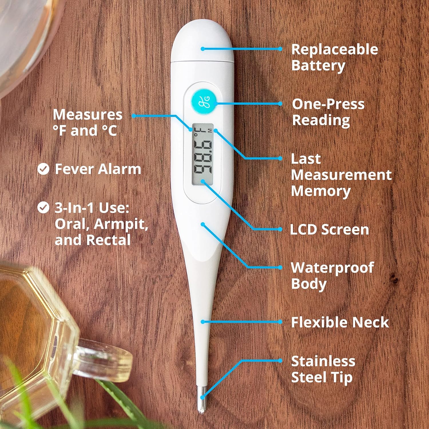 • Impeccable Design: With an eye-catching Greater Goods logo on the power button, a clean, easy-to-read LCD display, and compartment that makes replacing the battery incredibly simple, you’d be hard-pressed to find an oral thermometer that better sets you up for success when monitoring temperatures and illnesses from home.