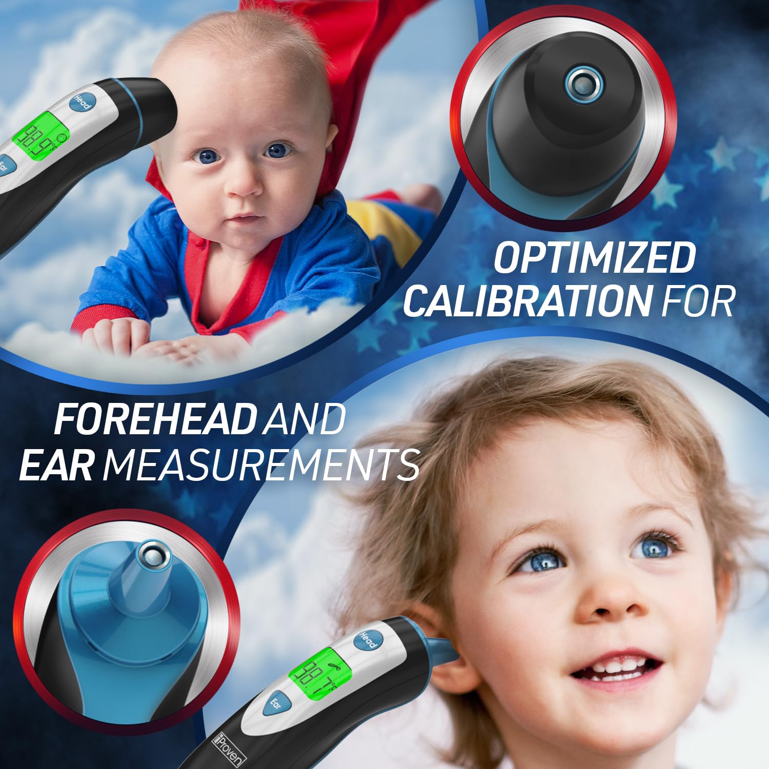 iProven Ear and Forehead Thermometer Dual Mode - 1 Second Accurate Fever Thermometer for Adults, Kids, and Babies - Digital Infrared Technology, Body Temperature Thermometer