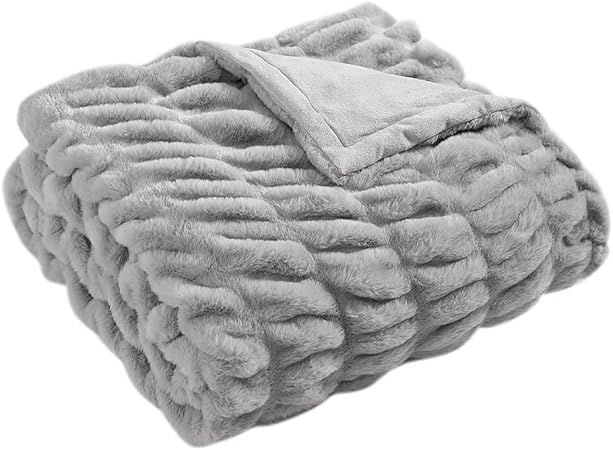 CASUAL CHIC Lapin Ultra Fine Faux Fur Throw Blanket - Luxurious, Chic, Soft and Cozy 400 GSM Microfiber Blanket for Couch and Bed - 50_ܝ x 60_ܝ (Gray)