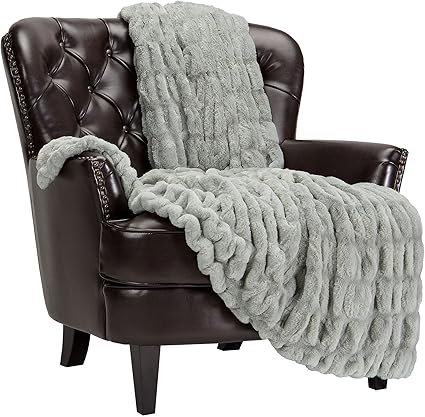 Chanasya Ruched Faux Fur Throw Blanket - Luxurious, Soft Reversible Mink Blanket - 50" x 65_ � - Tan Sage