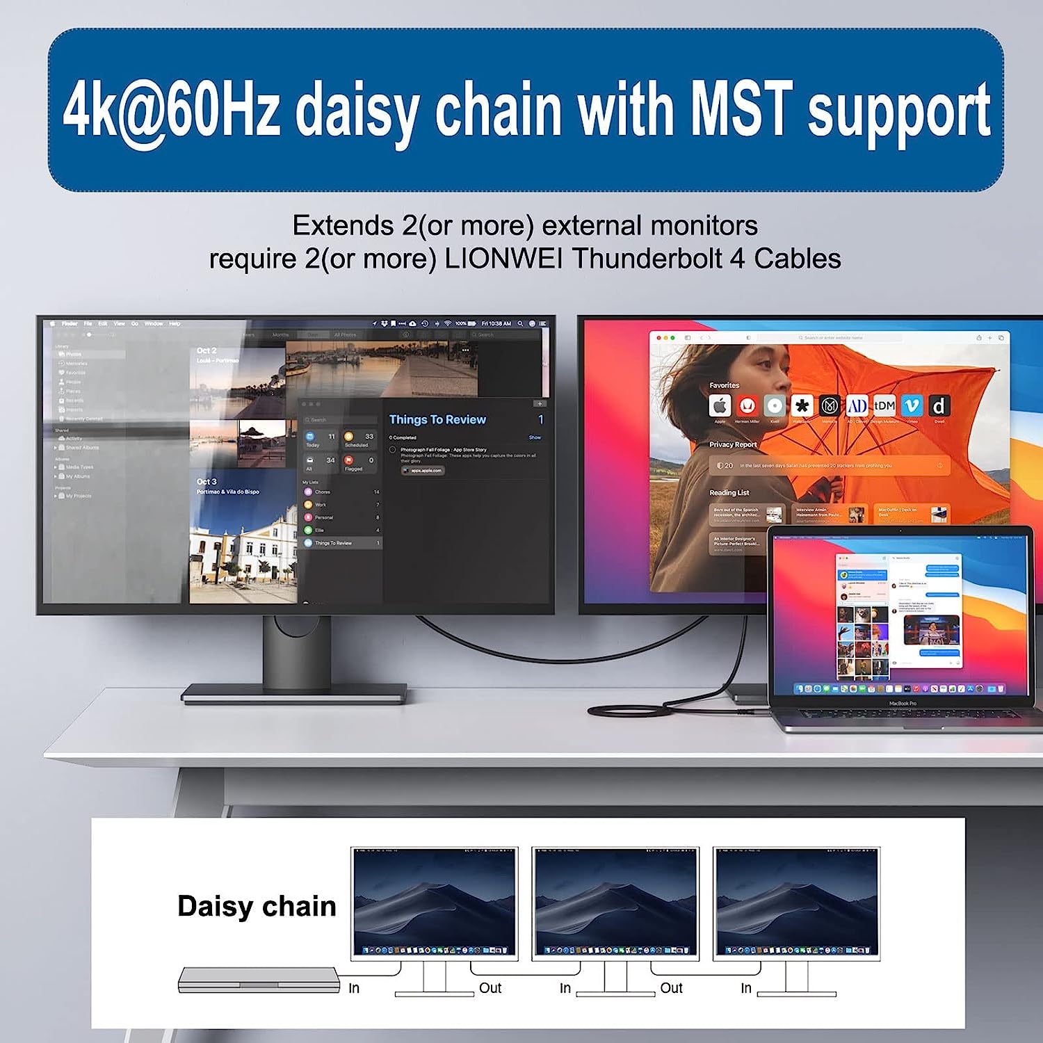 • 【What You Get】USB-C to USB-C thunderbolt 4 cable (6 ft), User Manul and reliable worry-free 18-month warranty, and our friendly customer service. We have faith in our LIONWEI thunderbolt cable and Service Support - you could email with any issue or your concern about this product to us, and our Support team will response to you in 24-hour and give you a proper solution.