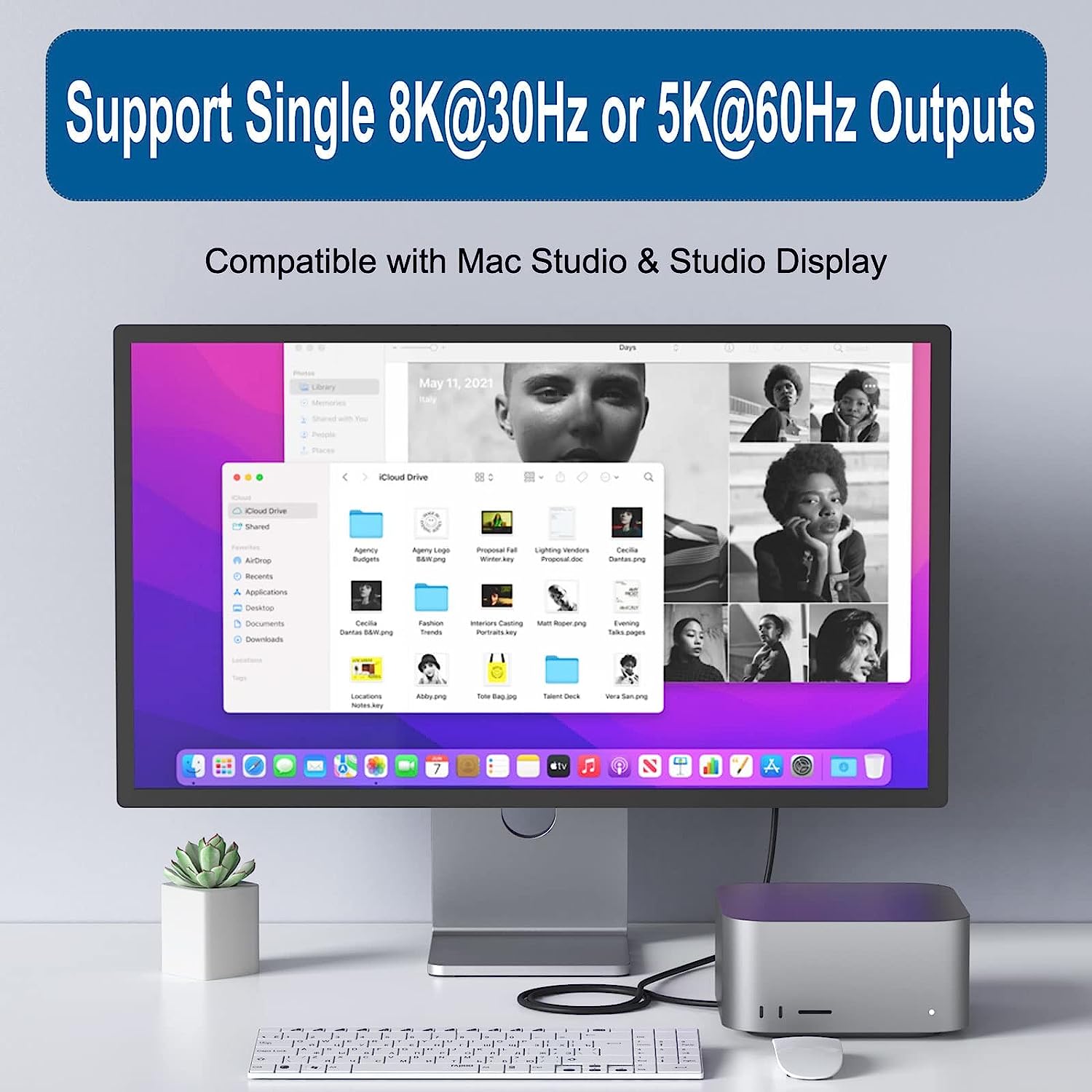 • 【Single 8K / Dual 4K】Supports thunderbolt daisy chain function; Enjoying ultra HD video resolution, 40Gbps bandwidth allows single 8k@30Hz, single 5K@60Hz outputs or dual 4K@60Hz video, 40Gbps speed cables are suitable for eGPU and dual 4K UHD display scenarios.
