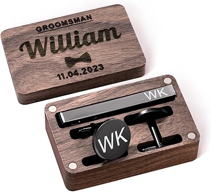 callie Personalized Tie Clips for Men, Custom Initial Name and Pattern on Mens Lapel Pins for Suits with Wooden Box, Tie Tacks for Men, Wedding Birthday Gift for Men Groomsmen