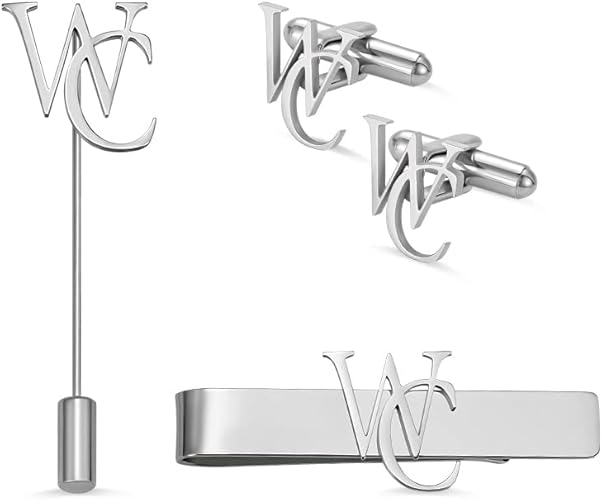 Personalized Mens Cufflinks Lapel Pin Tie Bar | Custom Name Initial Cufflinks for Men Wedding Groom Lapel Pin Tie Bar Gift for Him | Cuff Links for Man