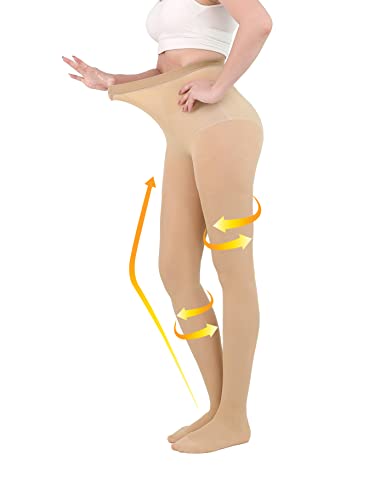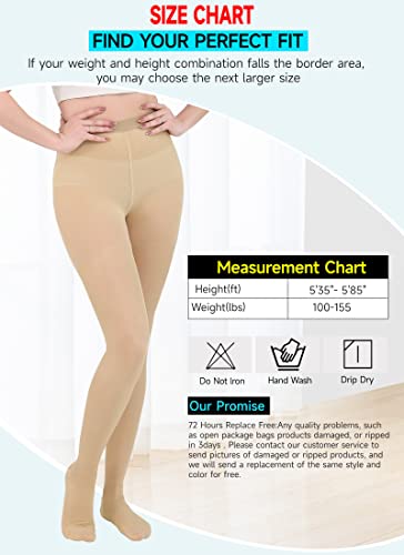 AMZAM Sheer Compression Pantyhose for Women, Waist High 15-20 mmHg Graduated Compression Stocking, Closed Toe, Comfortable Support Hose for Ladies, Improve Circulation, Relief Swelling, Beige L