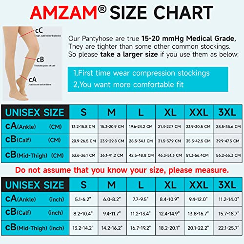Details: What Makes Our Products Different? AMZAM has a long tradition of manufacturing stockings and leggings. The experience gained over the years as well as professionalism and textile expertise give life to the AMZAM brand. Are you troubled by leg blemishes or thick legs?That's why we've designed one of these sheer compression tights. All designed with you in mind Built on quality style comfort and usefulness. AMZAM Ultra Sheer High Waist 15-20 mmHg Compression Stockings uses only the highest quality materials in a wide range of styles to suit every need and occasion Based on your physical characteristics. AMZAM has designed Women's Sheer Compression Pantyhose that are comfortable to the touch. The waist is strongly wrapped slender widened and finely routed strengthen the toes straight to the crotch. Comfortable and soft butt lift breathable. In addition to, This sheer compression pantyhose are a beneficial item for many people with a variety of medical conditions. These clear compression stockings from AMZAM also helps the body's circulatory system work better thereby reducing swelling and discomfort. Our sheer women's shaping tights play an important role in providing you with comfort fitness and stamina. Trust me you'll love these comfortable moderately controlled sheer support compression pantyhose. Lightweight compression stockings that shrink your belly hips and buttocks. The daytime see-through compression pantyhose feature a slightly tight-fitting knit that resists running and pulling while still providing a beautiful see-through look during the day. Women's sheer compression pantyhose lightweight leg support will help you feel energized and refreshed with all these features and benefits. it's no wonder that AMZAM sheer tights are a reliable wardrobe staple for active busy professionals, nurses, teachers, flight, attendants hotel and food service workers office managers and more. Enjoy the unmatched comfort fit style and durability of our sheer tights now.