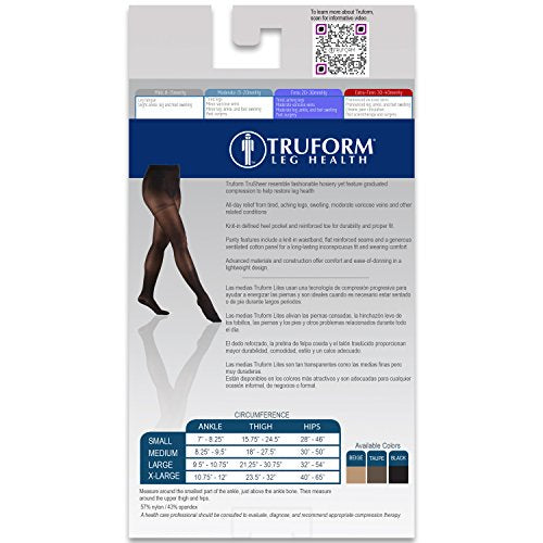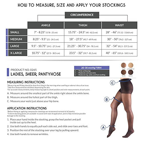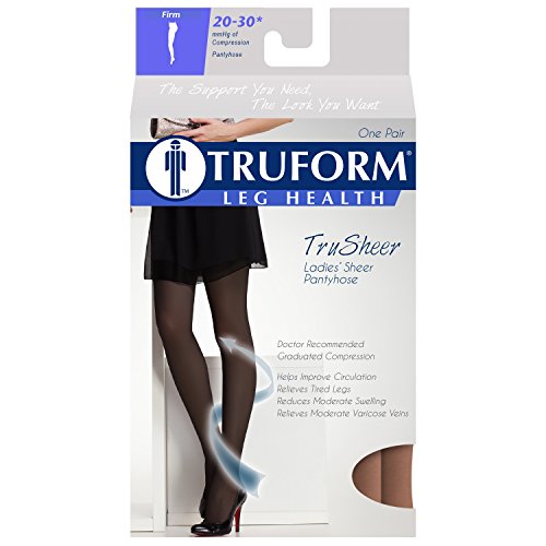 Details: Product Description Truform 0265 from the TruSheer line is designed to help restore leg health and reduce discomfort. They provide long-lasting medical-grade support, yet have a sheer look and feel that appeals to today's active, fashion conscious woman and are excellent for both business and casual wear. The 20-30 mmHg firm compression level is great for tired, aching legs and moderate varicosities, varicose veins, spider veins, moderate edema, post surgery and post sclerotherapy, help to prevent venous ulcerations and thrombophlebitis, and more. Truform stockings, socks and pantyhose feature Graduated Compression Technology, which delivers a compressive action to the leg that is greatest at the ankle, then gradually decreases toward the heart. This graduated compression provides two primary benefits to the legs: increased pressure on tissues beneath the skin helps reduce and prevent swelling for the wearer, and the compression action helps control the size of the superficial veins that lie just beneath the skin; preventing the slowing of blood flow so it can flow more quickly up the leg and back toward the heart. Truform graduated compression support hosiery helps maintain positive circulation and leg health. We combine the best materials, the latest methods of semi-automated manufacturing, and hand craftsmanship to produce a high-quality product at affordable prices. We take the extra time and effort necessary to insure a therapeutically effective, comfortable fit. The combination of state-of-the-art materials and equipment, plus knitting know-how sets us apart from the crowd to make your legs look and feel great. Manufacturer Contact Information 3960 Rosslyn Dr, Cincinnati, OH 45209