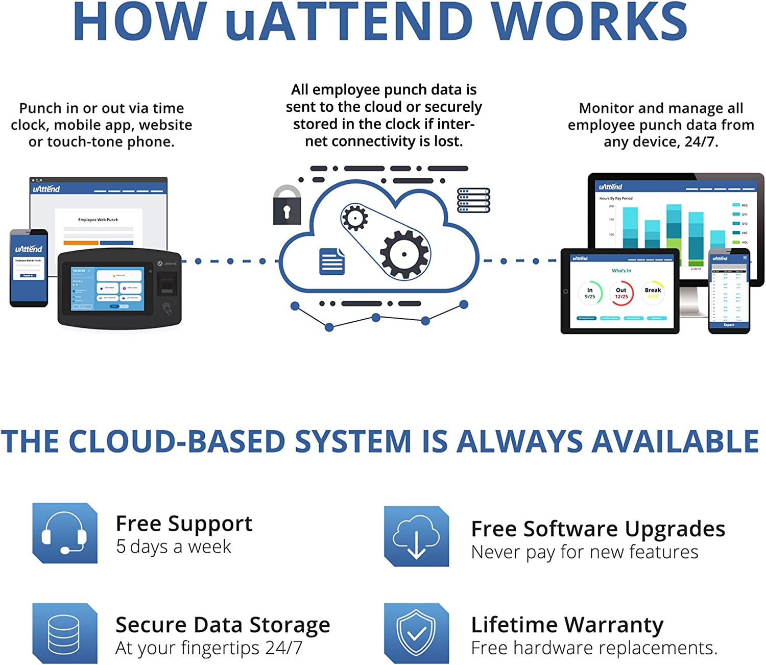 uAttend Cloud-Connected Touchscreen Time Clock with Finger Scan, RFID and PIN Punching in One (JR2000)