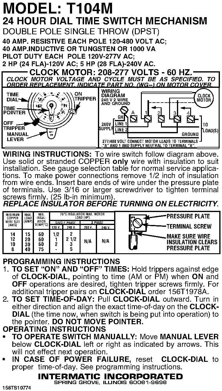 Intermatic T104M Mechanical Time Switch Mechanism Only