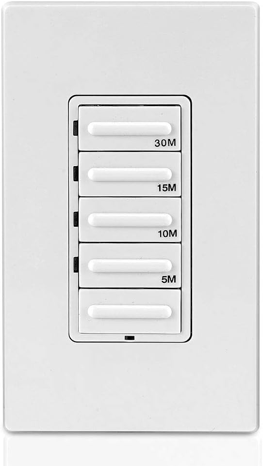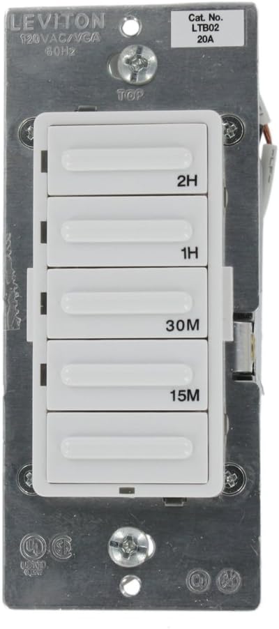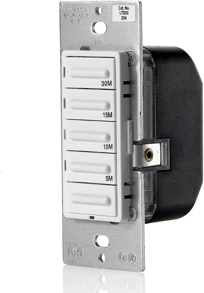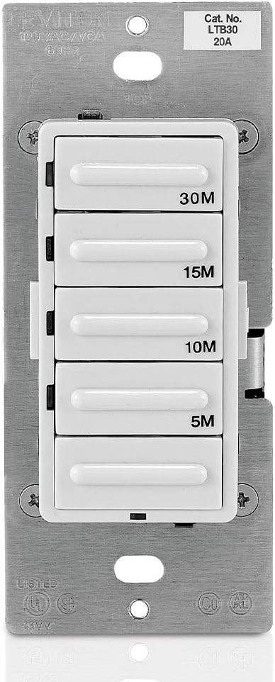 Featuring a streamlined, contemporary design, the Leviton LTB30 Decora Preset 30-Minute Countdown Timer offers advanced features and superior accuracy. It provides convenient timed control of lighting and motor loads in homes, offices, schools, libraries, and more. It's ideal for automating heat lamps, hot tubs, attic fans, and bathroom exhaust fans.